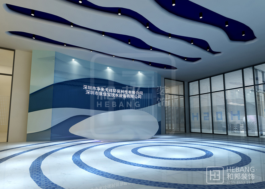 本案以水元素貫穿設計前后,立面設計簡潔大方,利用藍白色調配合流線型的設計外觀,給人一種不同尋常的視覺體驗,充分體現出了案例公司的性質,在原有的基礎上加了不少的分。