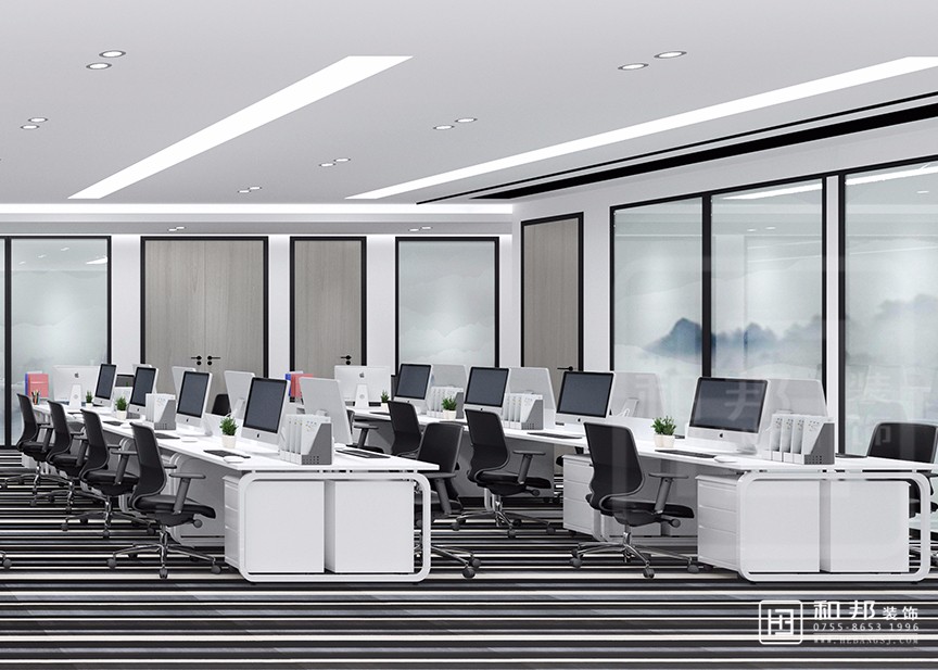 較為精煉的顏色打造干凈整潔的視覺效果,可以達到放大空間的視覺效果,有助于提升整個辦公空間的品質感。