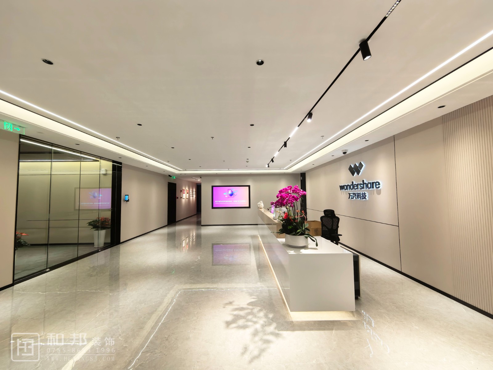 設計說明本案用符合萬興科技的創意造型來塑造空間塊面,結合智能數字化設備和燈光來點燃科技感。當然配上時尚而有跳躍感的顏色來演繹年輕,爆發力,思想力等知覺。結合我們對空間造型的豐富經驗來體現萬興科技的核心關鍵詞,【讓世界更有創意!】